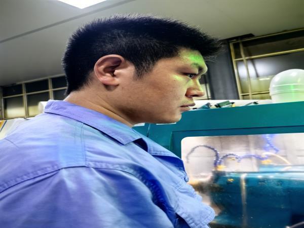 走出不過(guò)二十步,劉師傅正踮腳安裝新工件的身影撞入視線。他藍(lán)色工裝后背洇出大片汗?jié)n,汗水正順著脖頸往下淌。“劉師傅,您這是剛游完泳回來(lái)?”曹景輝笑著遞上冰糕?!摆s工呢!”劉師傅抹了把臉,“前道工序多搶點(diǎn)時(shí)間,后面兄弟們就能松快些?!痹捯粑绰?,他又埋頭調(diào)試起卡盤(pán)。
