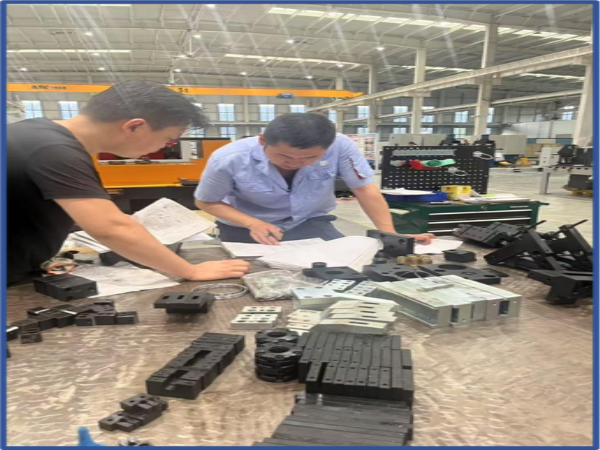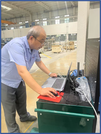 “足蒸暑土氣,背灼炎天光”,走進(jìn)車間,師傅們臉頰上混雜著汗水和黑色的印痕,淺藍(lán)的衣服早已變成深藍(lán)。即便如此,設(shè)備開發(fā)部師傅們也未曾有絲毫的懈怠,嚴(yán)肅的神情和精湛的技藝彰顯著工科人的細(xì)致和專業(yè):整齊擺放的物料嚴(yán)陣以待,調(diào)試好的零件精益求精。機(jī)器的轟鳴和師傅們的吶喊交相呼應(yīng),形成了盛夏中別具一格的交響樂。