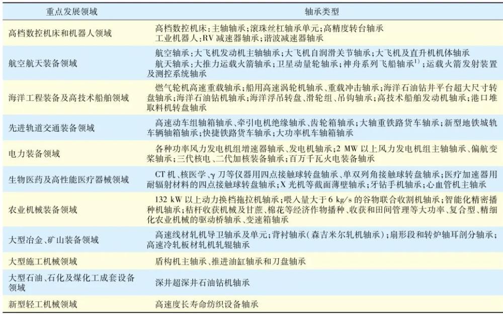 表1 “十四五”期間我國重大技術(shù)裝備配套軸承和其他高端軸承的開發(fā)任務(wù)