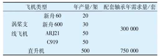 表2 我國民用飛機產(chǎn)量及相應(yīng)配套軸承需求量